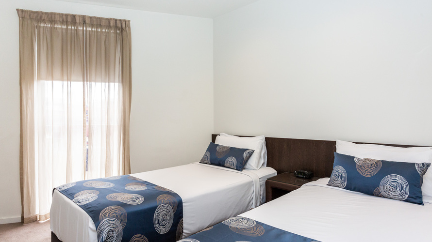 Large private balcony with bay views, separate bath and shower, sitting area and latest LCD TV and free WIFI. A bedding configuration of two King Beds or four King singles; flexible for a larger group or family.
